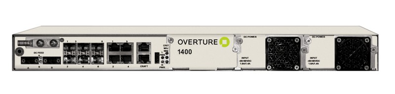 Reliability and Performance - Carrier class means 99.999% availability, sub-50ms protection switching, and low-latency line-rate throughput on every interface. The compact, temperaturehardened Overture 1400 is designed for the demanding environments of the telco central office, outside plant cabinet, datacenter or enterprise wiring closet. In addition, the 1400 provides the resiliency and monitoring features required for high-performance financial services and data center applications.